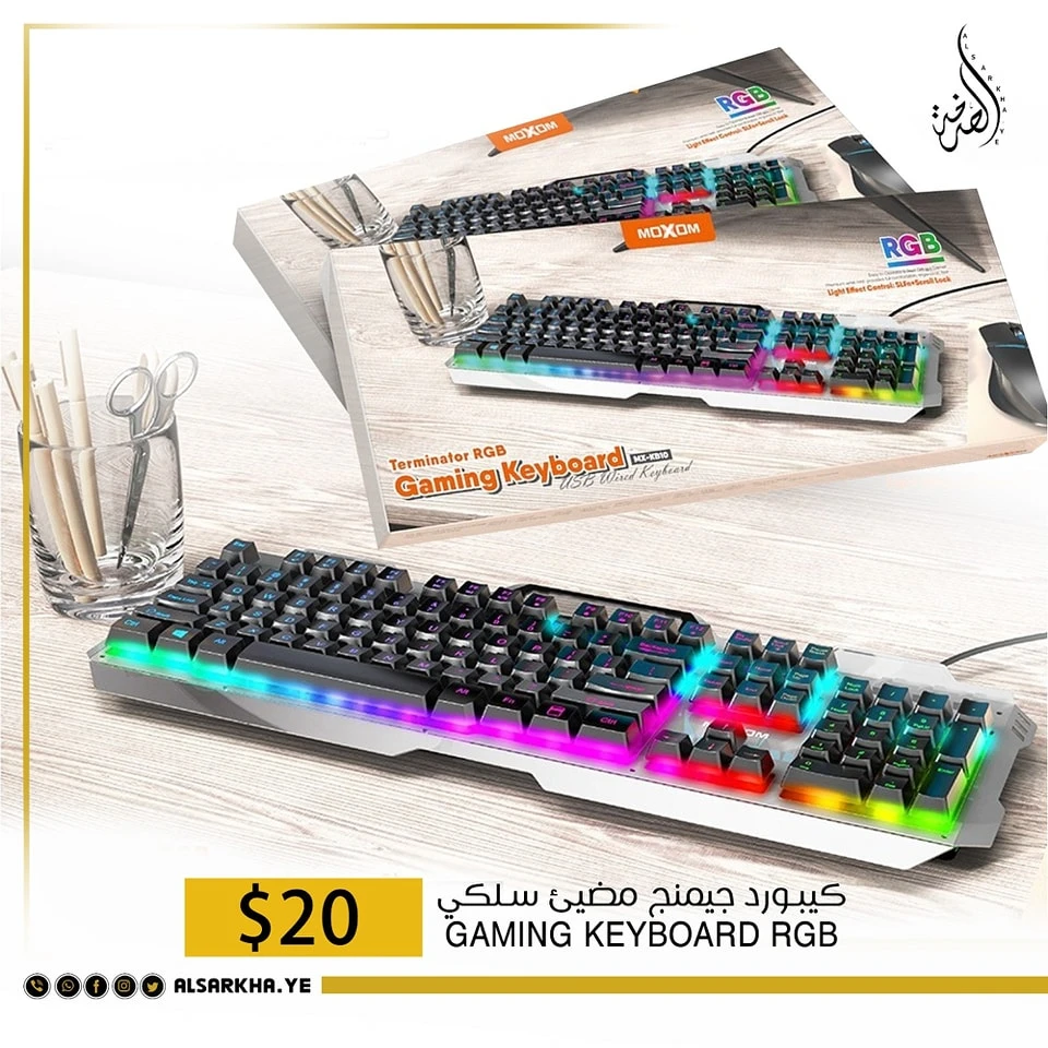 لوحة مفاتيح الألعاب Moxom MX-KB10 RGB هي لوحة مفاتيح سلكية مصممة للاعبين. تتميز بلوحة مفاتيح سوداء مزودة بإضاءة RGB متعددة الألوان. لوحة المفاتيح بها 104 مفتاحًا ومقاومة للماء والغبار.