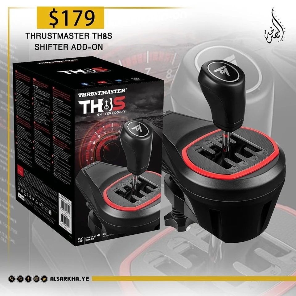 Thrustmaster TH8S Shifter Add-On هو مبدل ذراع نقل الحركة للمسابقات متعدد الاستخدامات مصمم للاستخدام مع جميع عجلات القيادة Thrustmaster ، بما في ذلك T300RS و T500RS و T150. يتميز بمخطط تبديل "H" مع 7 سرعات بالإضافة إلى ترس الرجوع ، مع تبديل التروس المباشر ، مما يسمح له بالتكيف مع جميع أنواع الألعاب والمركبات ذات النقل اليدوي (رالي ، شاحنات ، GT ، NASCAR).